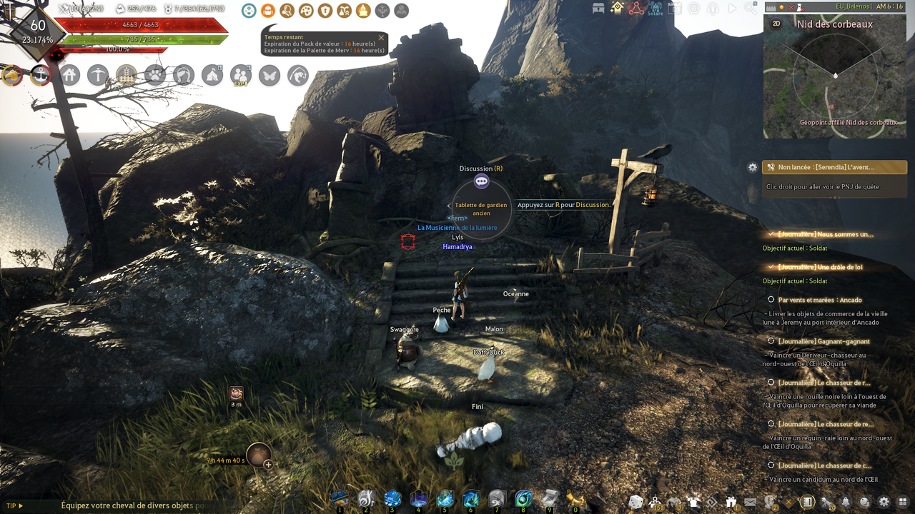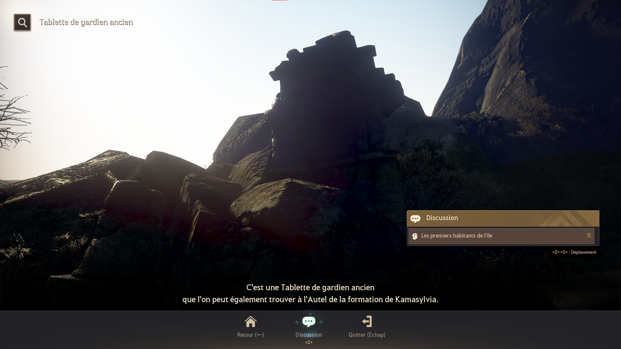 - Description: Before the Crow Merchant Guild came to the foggy isle, was this merely a deserted island boasting a beautiful view? One look at Anax at the wharf and you would suspect the island to have been quite normal, yet his refusal to answer and just smile has led to many speculating on the island's origins. One recent but popular theory is that this was an "island of training." Calpheon nobles who have traversed Kamasylvia claim that the relics uncovered at the island peaks are quite similar to those found at the Altar of Training in the Valtarra mountains. Can be obtained through [Interaction] Why are there same slates at the peak of Crow's Nest as in Kamasylvia? | |